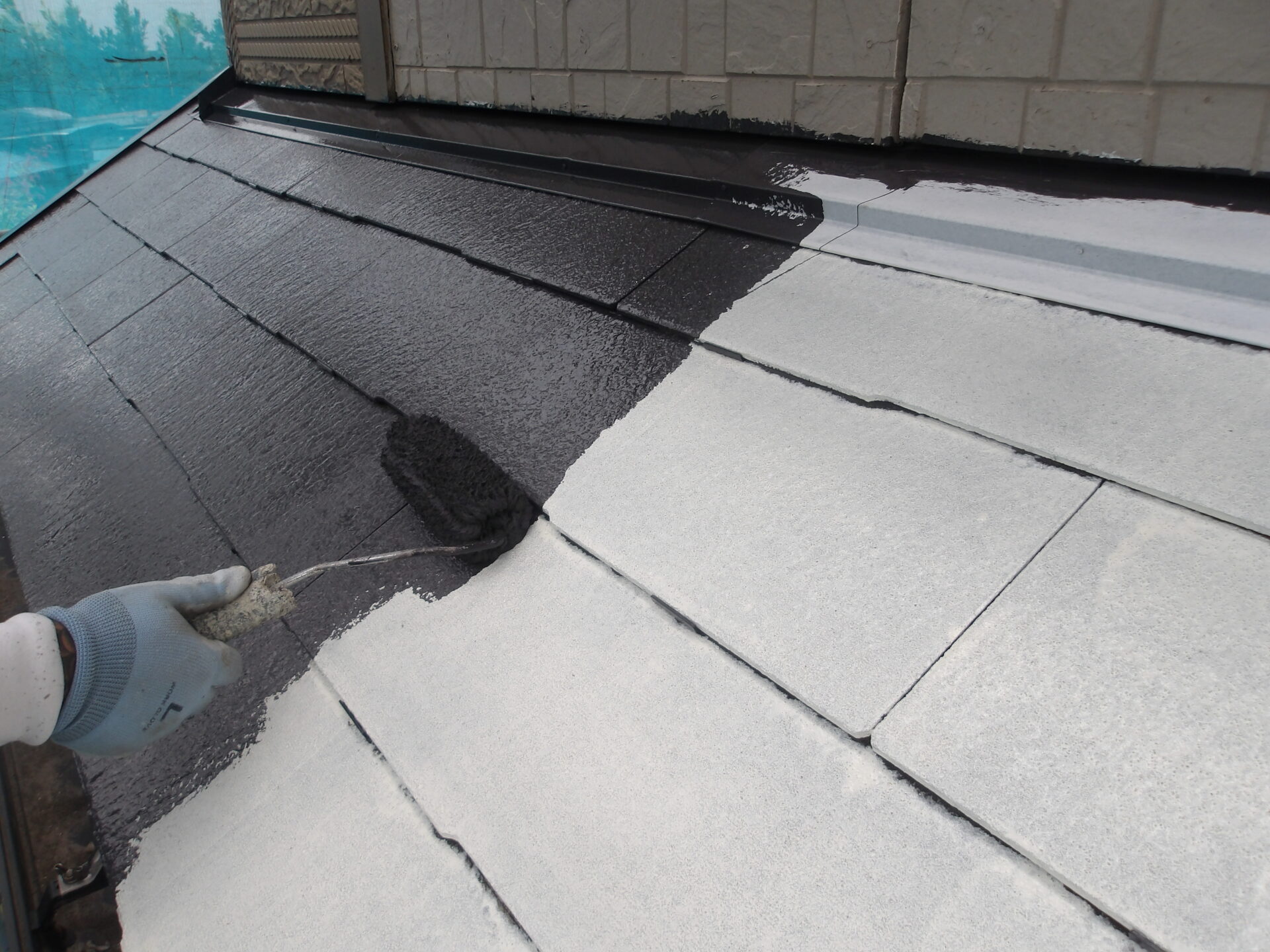 下屋根/上塗り1回目